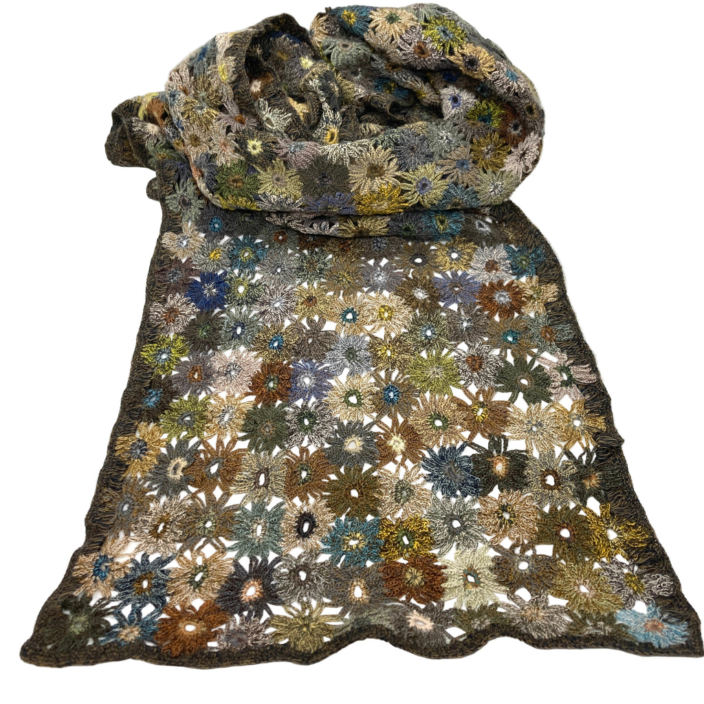 Grande écharpe Sophie Digard, réalisée à la main au crochet en lin, motif ajouré
