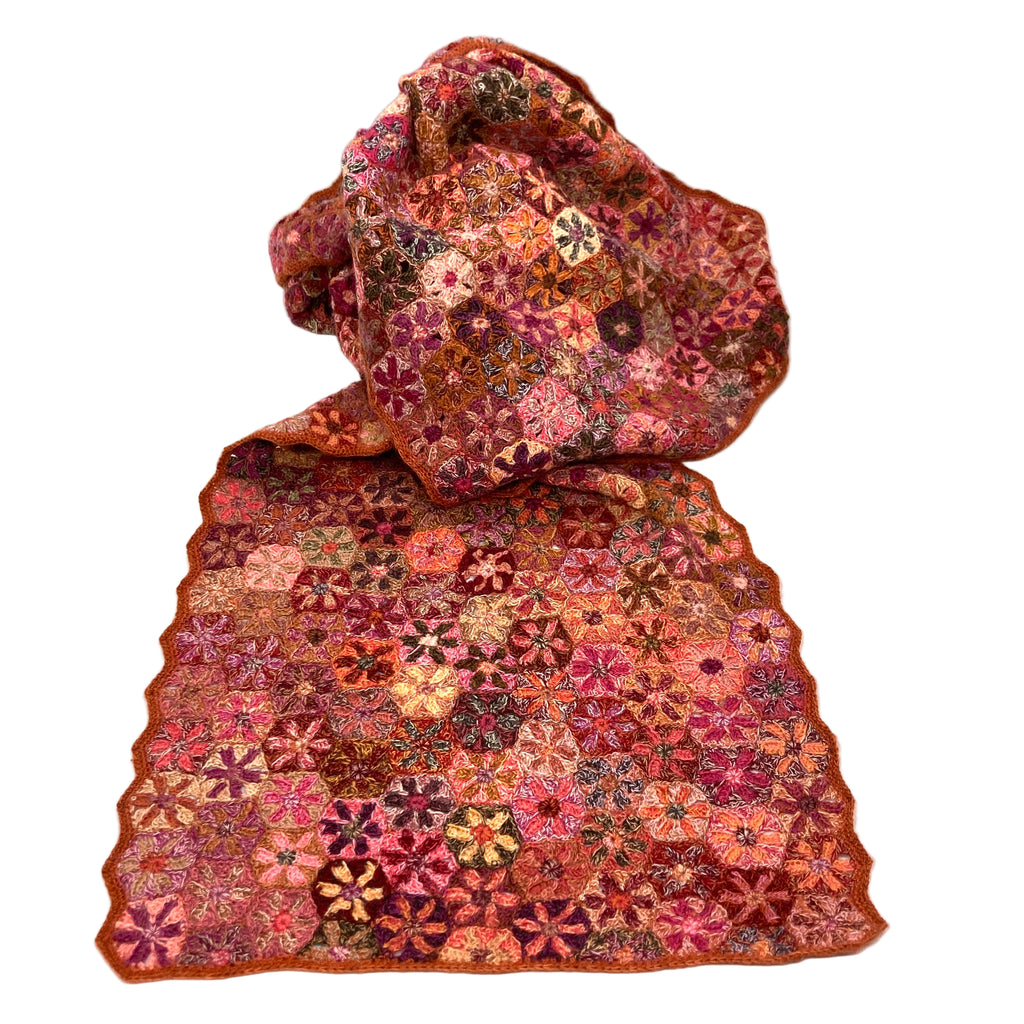 Grande écharpe Sophie Digard, réalisée à la main au crochet en lin, motif géometrique